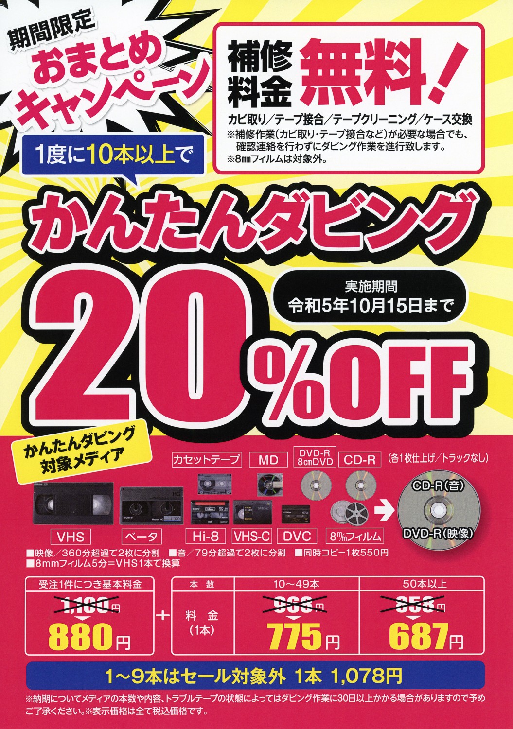 10分以内 1,980円(ディスク代込・税込)非常にお安くなっています。